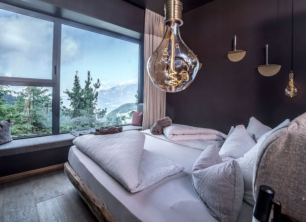 Fühl‘ dich frei und dem Wilden Kaiser so nah. Die kuschelige Panorama-Fensterbank lässt dich