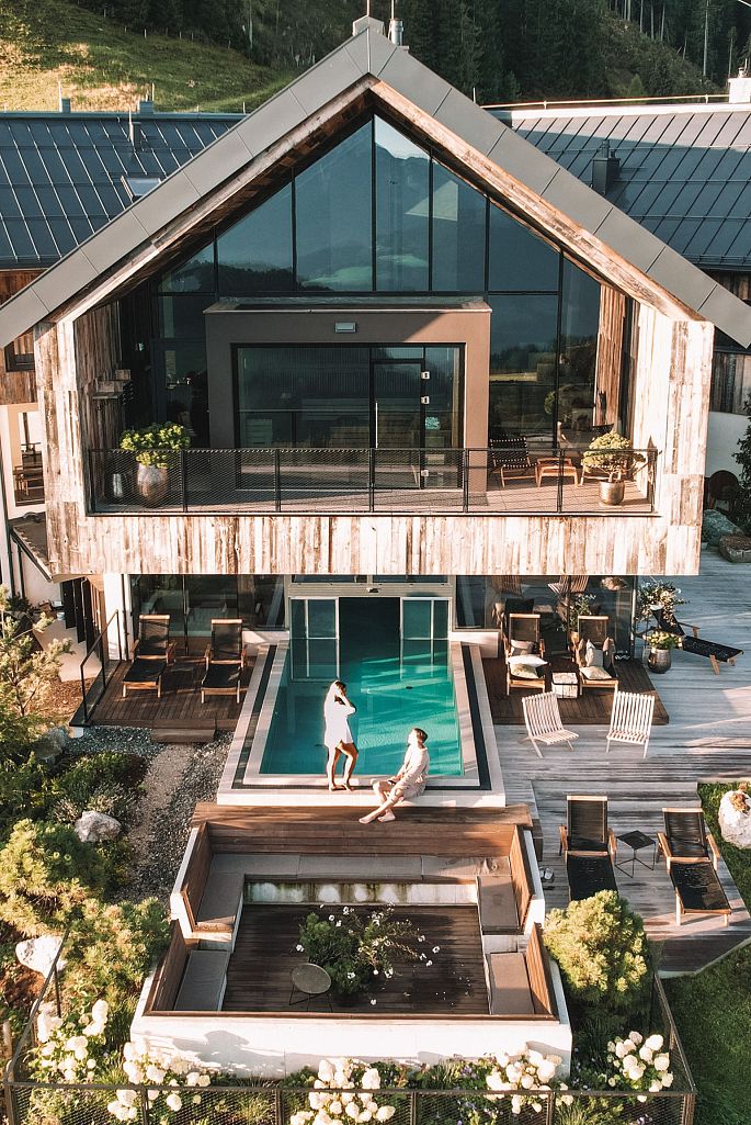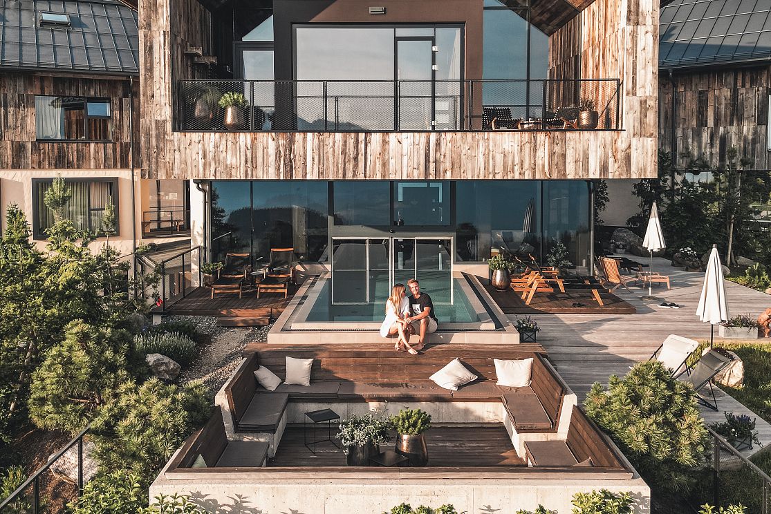 Danach geht’s direkt in den Wellnessbereich zu einer Wanderung am Berg.
