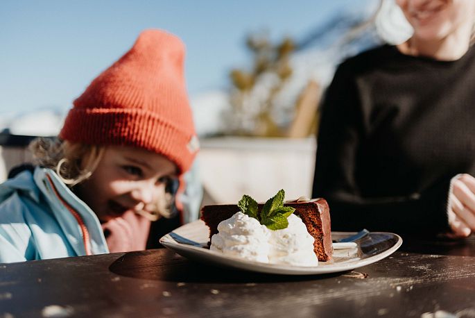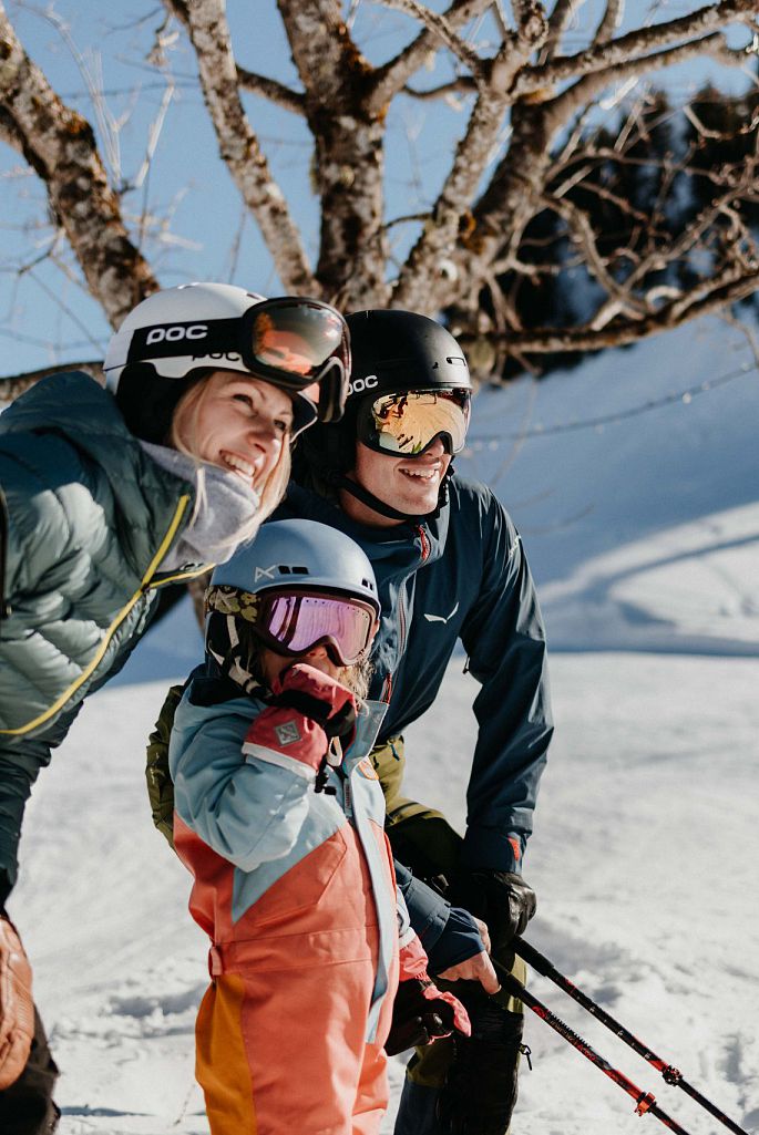 Die kleinen "Schneeflöckchen" machen bei einem bunten und abwechslungsreich gestalteten Programm die ersten Schwünge. Die Eltern ziehen genussvolle Spuren auf den Bretteln oder lassen sich vom Guide versteckte Pisten zeigen.