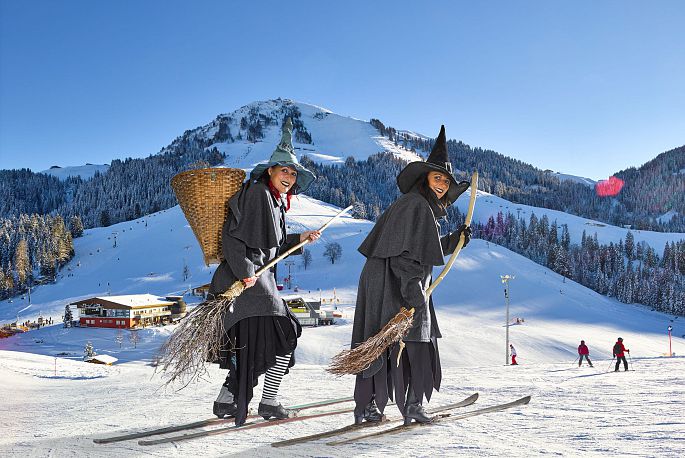 Die Hexenwasser Hexen von Hochsöll (auf Ski in ca. 15 Minuten erreichbar) haben das Wunderwerk Winter für sich entdeckt. Im ganzen Skigebiet „fliegen die Hexen“ und machen auf sich aufmerksam. Es waren ja schlussendlich zwei Hexen, die mit ihrem Wissen und ihrer Weisheit die Landschaft um Söll bleibend geprägt haben. So ist im Sommer das Hexenwasser und irgendwann auch der Hexenwasser Winter in der SkiWelt Söll entstanden.