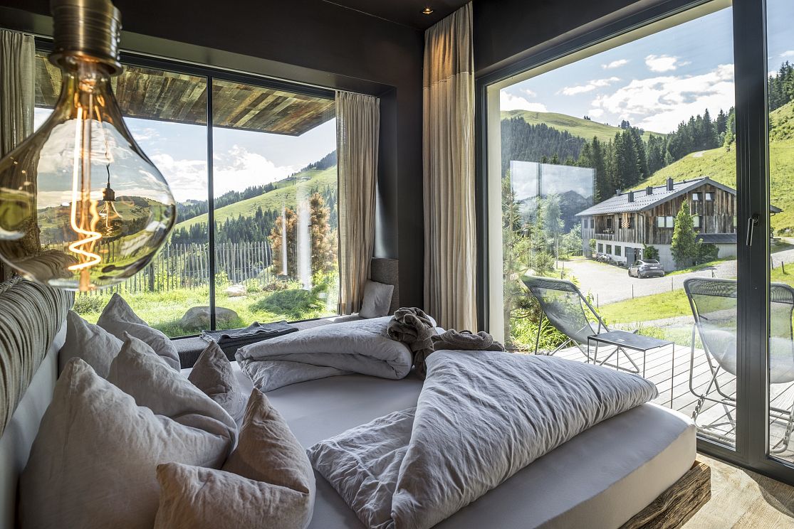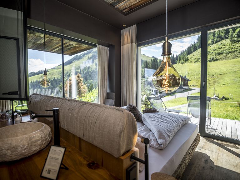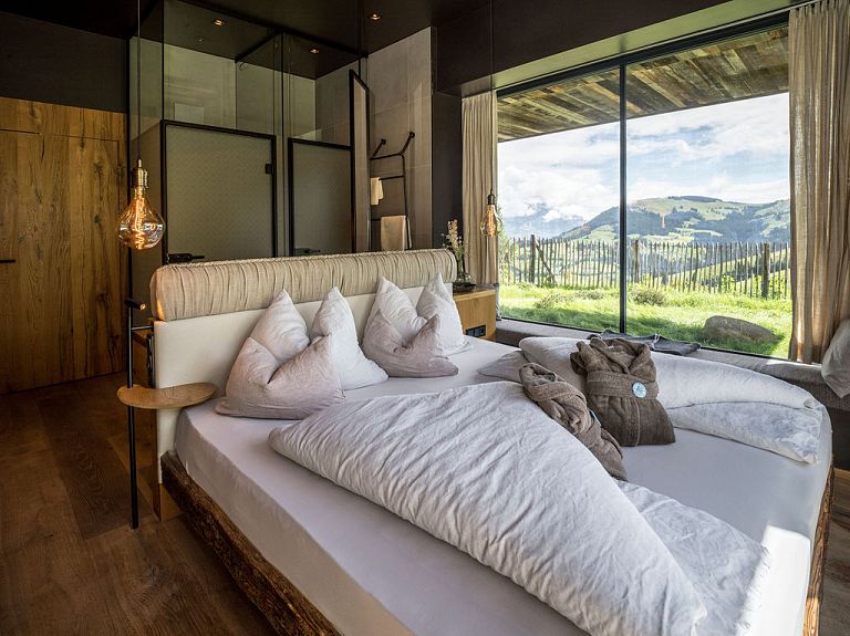 • Panorama 90° window seat and ground level door to the Alpine meadow