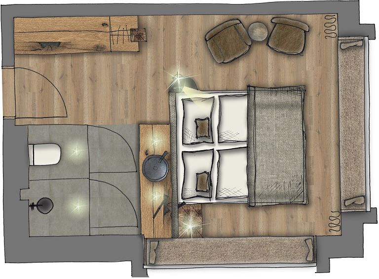 • Check-in is available between 14:00-16:30. Please note that the last journey in the gondola is 16.30. Later arrival in the Kraftalm is not possible and you will have to pay for your own costs to stay in the valley. In the event of earlier arrival times, you may store your luggage with us and avail of our premises. Please settle your check-out by 10.00 on the day you are due to depart. You can enjoy a relaxing end to the day on the mountain.