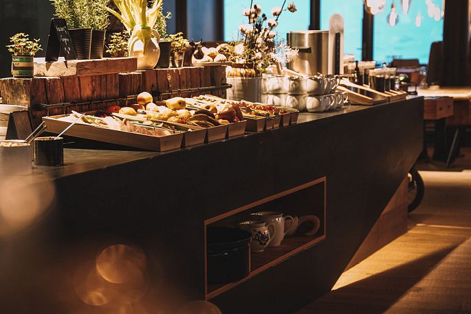 Come into our cosy breakfast room, on our stone block there are plenty of delicious local treats available to help you enjoy a great start to your day. Home-made jams, fresh pastries, our energy-packed muesli, our served egg dishes made using eggs from Söll‘s free-range hens – all this tastes at its best at your own favourite table in the morning sunshine.