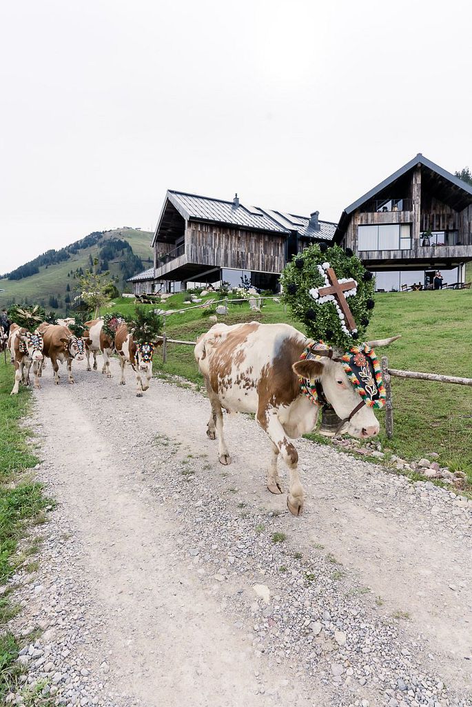 In the beginning, there was always agriculture. During the new construction project of the KRAFTalm, this was also the case. This is because hospitality and agriculture should always be appreciated. As a result of this, it was important that the stable buildings were also rebuilt and the cows were able to reoccupy the new alpine inn in the summer of 2019. Previously, it was the cattle belonging to our great-great-grandparents who grazed here, and today it is the animals of our aunt Elisabeth and her husband Meinrad. Elisabeth herself is a KRAFTalm - a girl who grew up on the mountains. So it's not just an alpine inn for her and her family, but it also always feels a little like coming back home. Quite rightly too, and we are very grateful for this. As family is and remains the foundation of our philosophy.